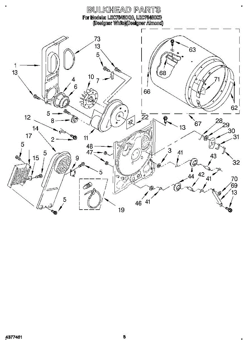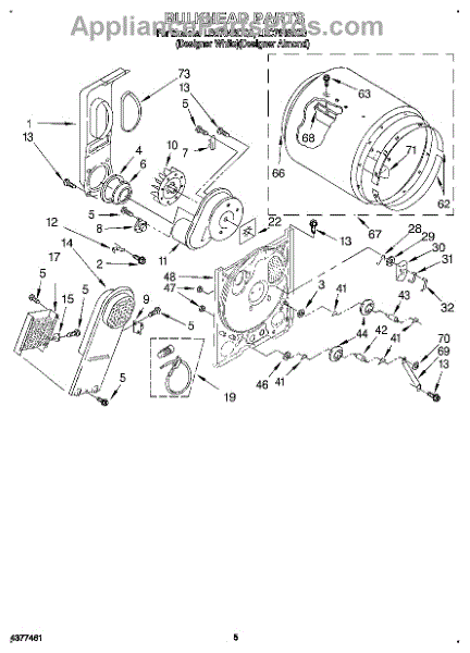 Replaces a cracked, dented, or damaged dryer drum bulkhead. This front drum component restores smooth tumbling action when the original is worn or broken.