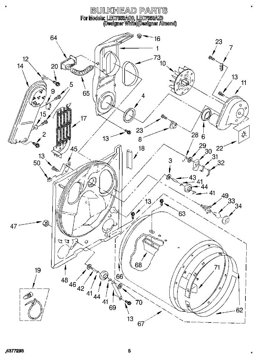 Replaces a cracked, dented, or damaged dryer drum bulkhead. This front drum component restores smooth tumbling action when the original is worn or broken.