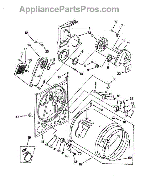 Replacement bulkhead that supports the front of the dryer drum and helps maintain correct drum alignment and airflow. Restores stable drum rotation and reduces rubbing, noise, and air leaks for more reliable drying performance. What it does: