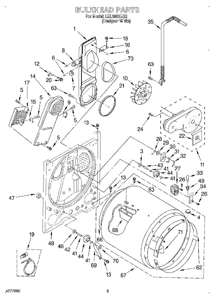 Seals the rear drum edge to contain hot air and improve drying efficiency. Replace if worn, torn, or causing noise. Confirm fit with your model number.