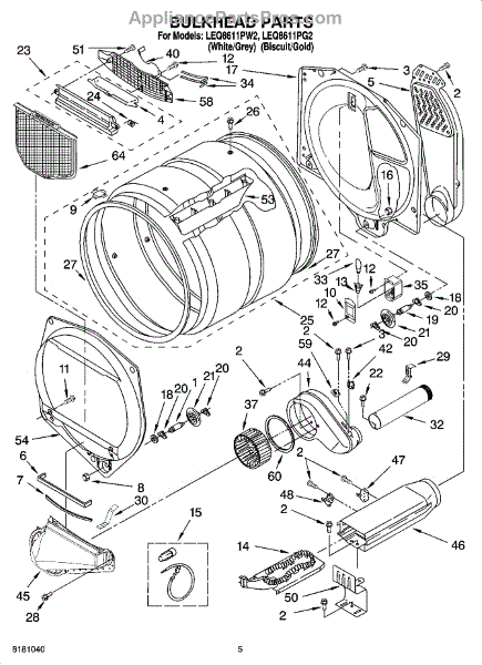 This front drum bulkhead is the stationary front panel that supports the dryer drum and seals the drum opening to maintain proper airflow and drum alignment for reliable drying performance. What it does: