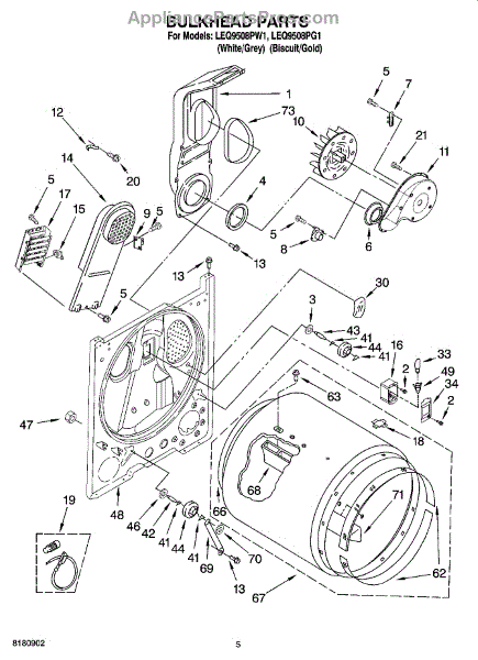 Replaces a cracked, dented, or damaged dryer drum bulkhead. This front drum component restores smooth tumbling action when the original is worn or broken.