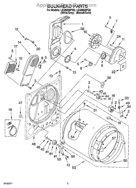 Parts for Whirlpool LEQ9858PG0: 03 - Bulkhead Parts