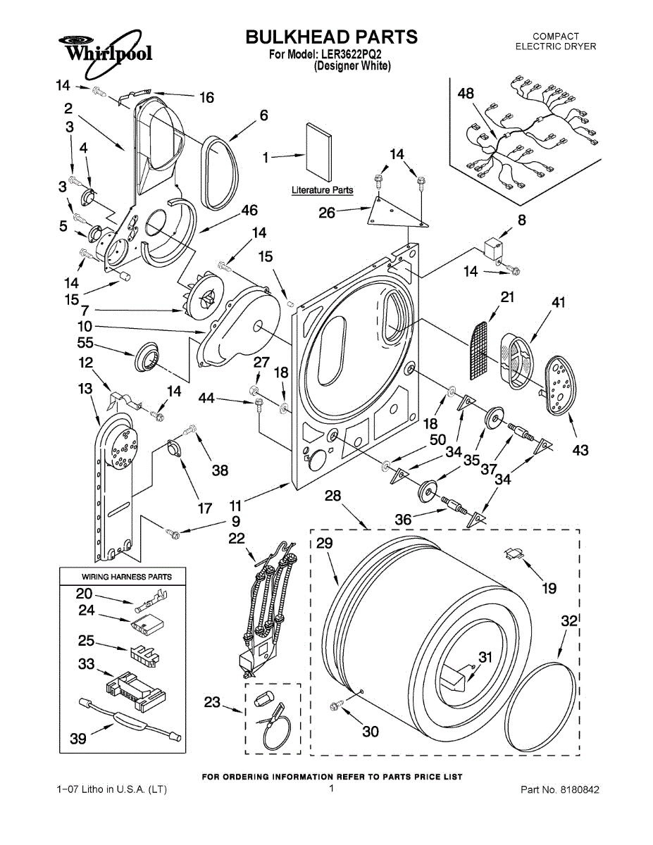 Seals the gap between drum and bulkhead to maintain airflow and quiet operation. Replace when worn to eliminate squealing, reduce lint buildup, and prevent fabric snags. Confirm fit by model number.