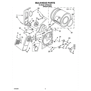 Replacement drum front bulkhead for dryers. Installs at the front of the drum assembly. Needed when original is cracked, damaged, or worn out.