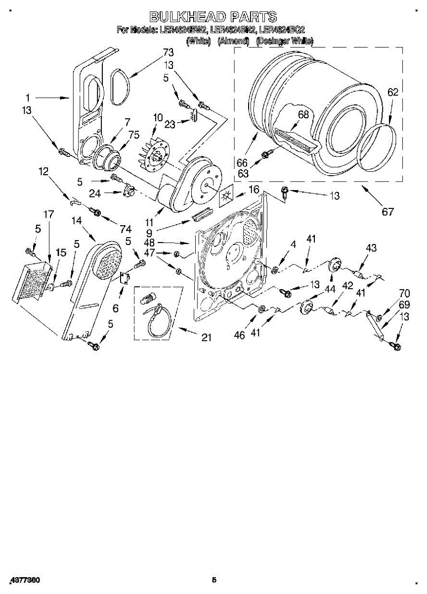 Replacement drum front bulkhead for dryers. Installs at the front of the drum assembly. Needed when original is cracked, damaged, or worn out.