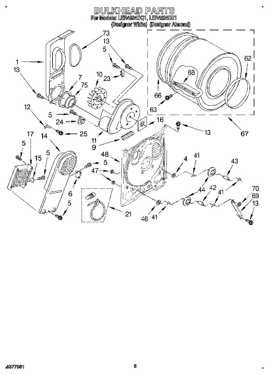 Replacement drum front bulkhead for dryers. Installs at the front of the drum assembly. Needed when original is cracked, damaged, or worn out.