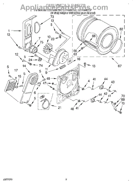 This is a drum assembly intended for use with dryers. This part can be found inside the dryer and is responsible for holding clothing while a cycle is running. It holds wet laundry while loading the appliance. Over time and with use, the drum assembly can start to wear out. This can cause the dryer to squeal, start and stop during a cycle, make buzzing noises, or seize up.If the drum assembly is damaged, it will need to be replaced. Make sure to have basic tools and a pair of work gloves ready. The dryer should be turned off and unplugged from the wall. Raise the top panel, remove the front panel, and then remove the drum. The drum support roller should be taken out and installed on the new drum. Reinstall with the new component and reassemble all parts before use.The drum assembly is made to be used with dryers and washer/dryer combos from Inglis, Estate, Admiral, Crosley, Roper, Magic Chef, Amana, KitchenAid, Maytag, Kenmore, and Whirlpool. It is a genuine OEM replacement part that is sourced directly from the manufacturer. The part is sold on an individual basis.