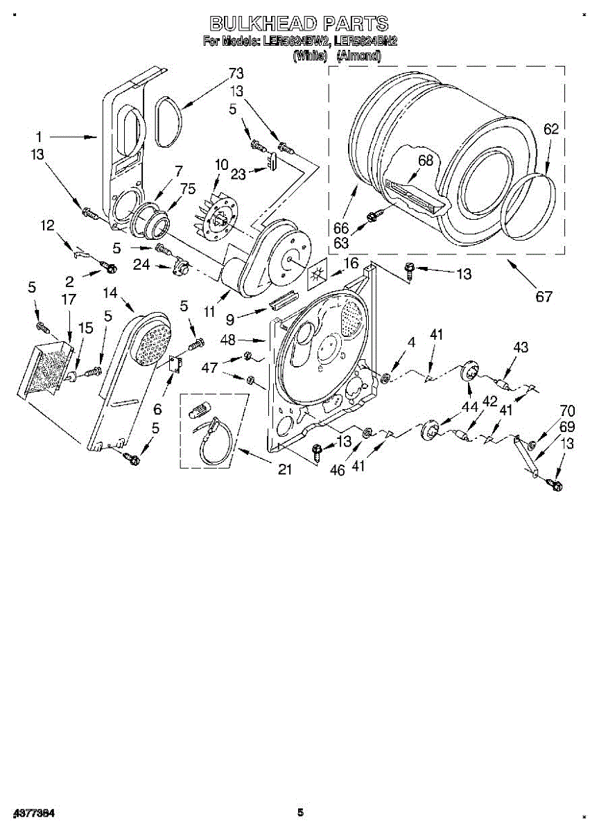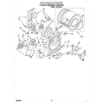 Replacement drum front bulkhead for dryers. Installs at the front of the drum assembly. Needed when original is cracked, damaged, or worn out.