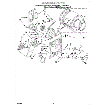 Replacement drum front bulkhead for dryers. Installs at the front of the drum assembly. Needed when original is cracked, damaged, or worn out.