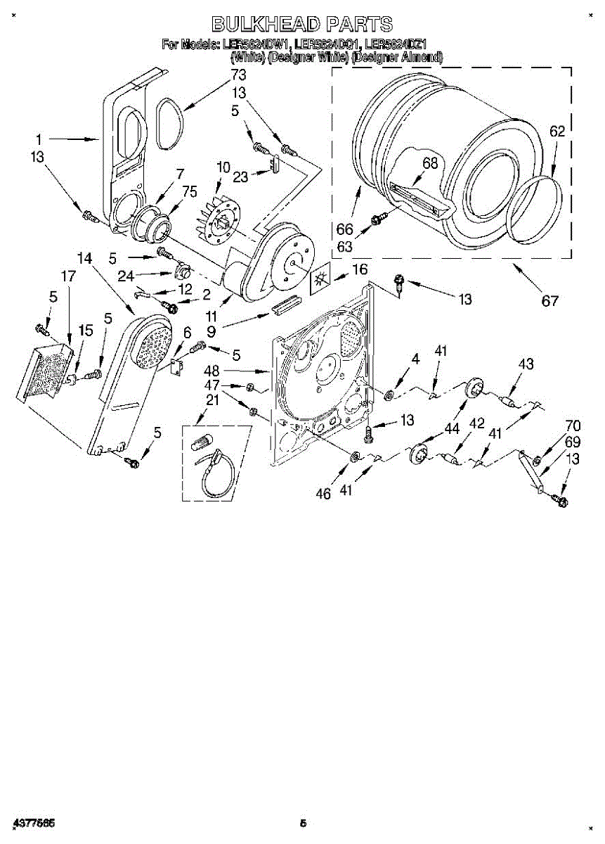Replacement drum front bulkhead for dryers. Installs at the front of the drum assembly. Needed when original is cracked, damaged, or worn out.