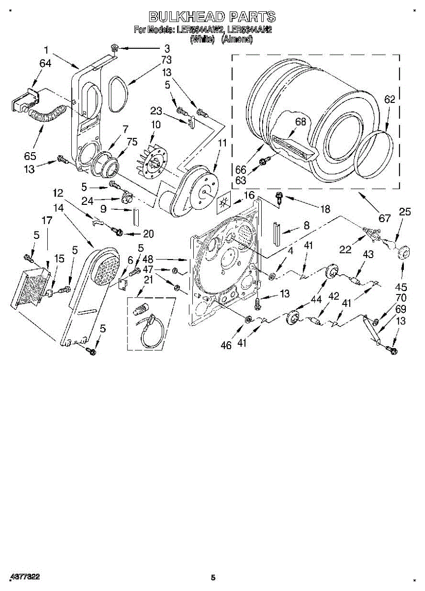 Replacement drum front bulkhead for dryers. Installs at the front of the drum assembly. Needed when original is cracked, damaged, or worn out.