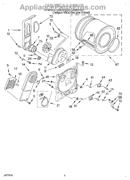 This is a drum assembly intended for use with dryers. This part can be found inside the dryer and is responsible for holding clothing while a cycle is running. It holds wet laundry while loading the appliance. Over time and with use, the drum assembly can start to wear out. This can cause the dryer to squeal, start and stop during a cycle, make buzzing noises, or seize up.If the drum assembly is damaged, it will need to be replaced. Make sure to have basic tools and a pair of work gloves ready. The dryer should be turned off and unplugged from the wall. Raise the top panel, remove the front panel, and then remove the drum. The drum support roller should be taken out and installed on the new drum. Reinstall with the new component and reassemble all parts before use.The drum assembly is made to be used with dryers and washer/dryer combos from Inglis, Estate, Admiral, Crosley, Roper, Magic Chef, Amana, KitchenAid, Maytag, Kenmore, and Whirlpool. It is a genuine OEM replacement part that is sourced directly from the manufacturer. The part is sold on an individual basis.