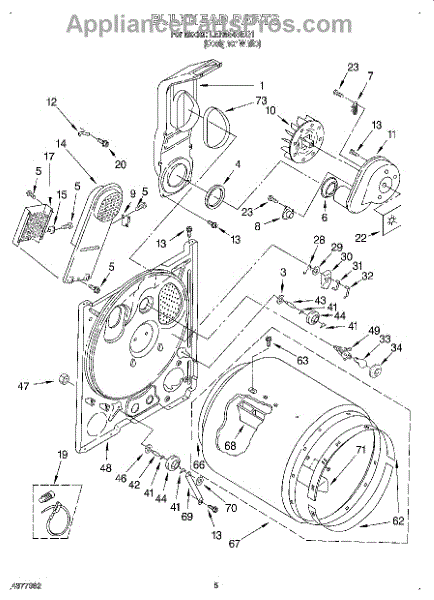 Seals the rear of the dryer drum to prevent hot air loss and ensure even drying. Replace when worn, cracked, or causing noise. Verify fit by model.