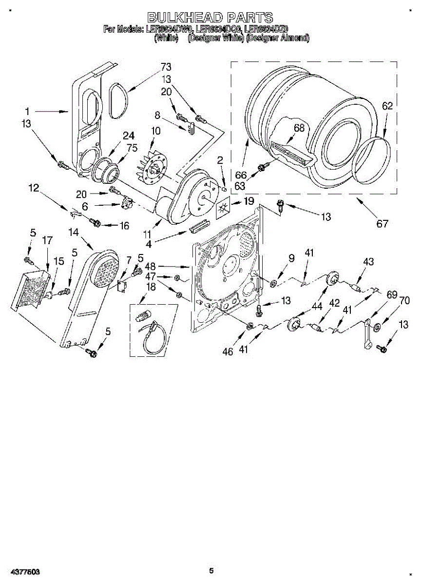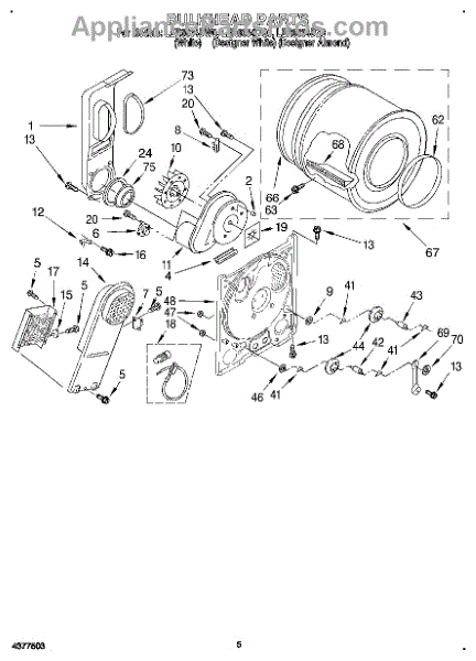 Complete drum assembly for dryers. Houses and rotates laundry during cycles. Replace if cracked, warped, damaged, or worn from extended use.