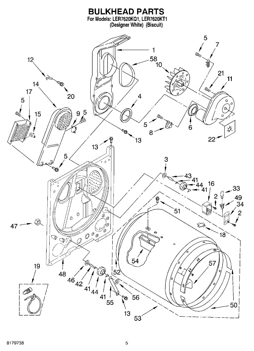 Replaces a cracked, dented, or damaged dryer drum bulkhead. This front drum component restores smooth tumbling action when the original is worn or broken.