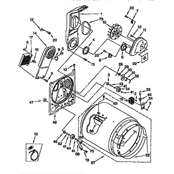 This blower housing assembly directs airflow from the dryer's drum to the exhaust, helping the appliance vent properly for efficient drying. It replaces a damaged or cracked housing to restore correct air path and reduce airflow loss. What it does: