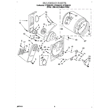 This bulkhead is the front tub housing that supports the washer drum and seals the washer cabinet to help contain water. Replaces a cracked or corroded housing to restore proper drum alignment and help prevent leaks. What it does: