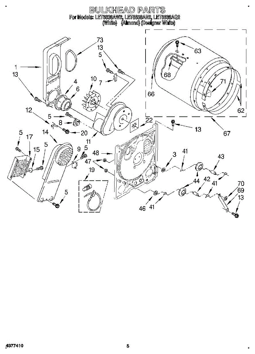 Replaces a cracked, dented, or damaged dryer drum bulkhead. This front drum component restores smooth tumbling action when the original is worn or broken.
