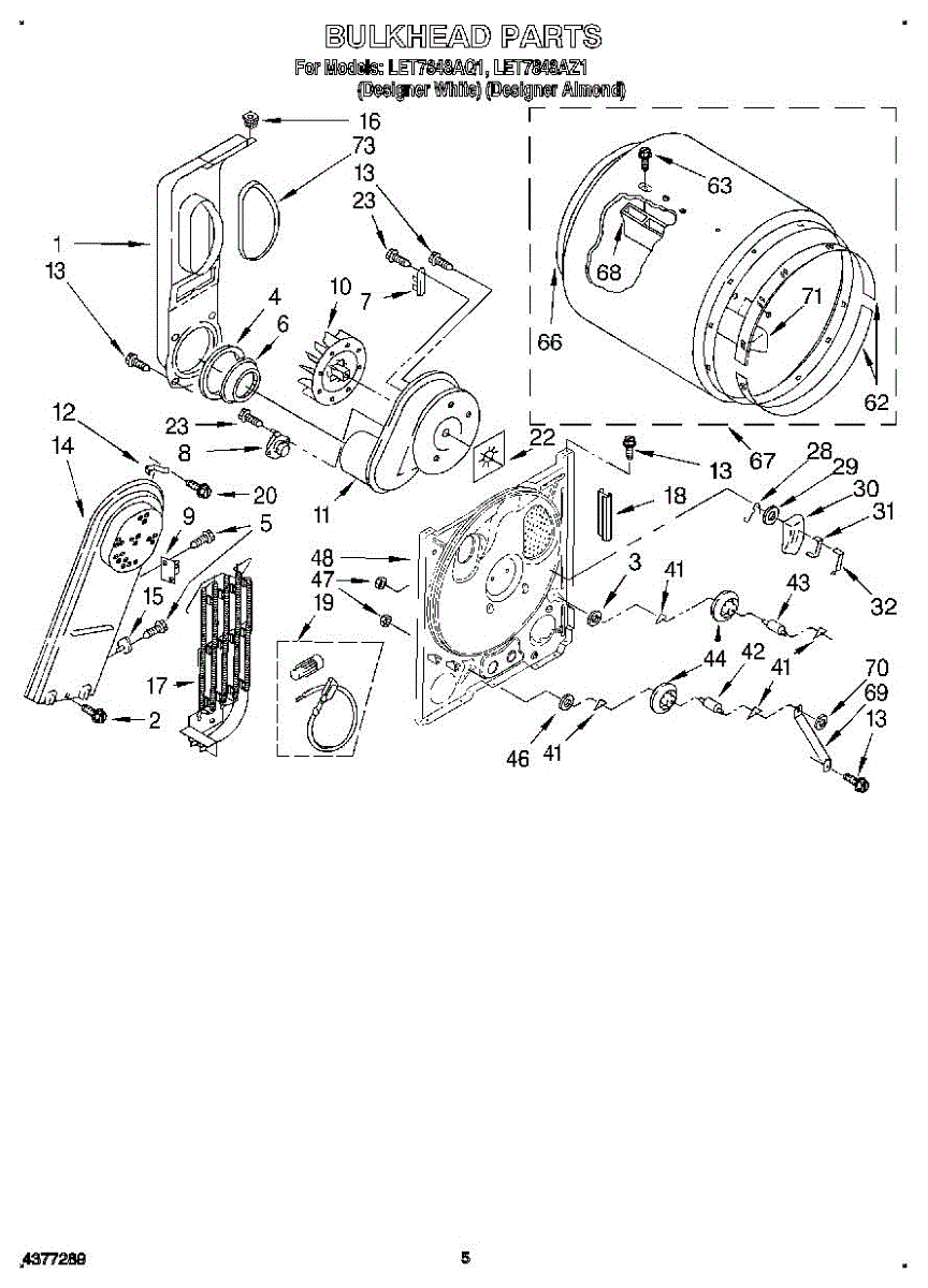 This bulkhead is the front tub housing that supports the washer drum and seals the washer cabinet to help contain water. Replaces a cracked or corroded housing to restore proper drum alignment and help prevent leaks. What it does: