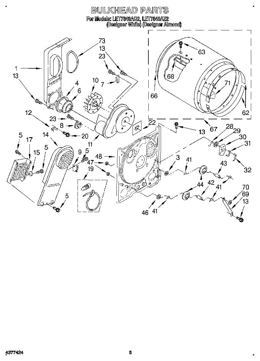 Replaces a cracked, dented, or damaged dryer drum bulkhead. This front drum component restores smooth tumbling action when the original is worn or broken.