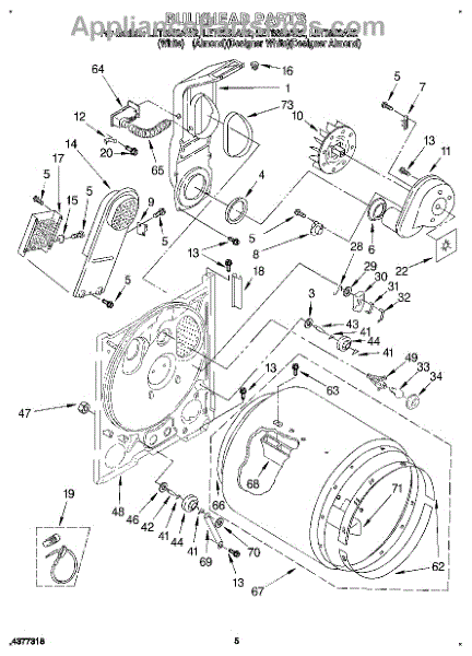 Replaces a cracked, dented, or damaged dryer drum bulkhead. This front drum component restores smooth tumbling action when the original is worn or broken.