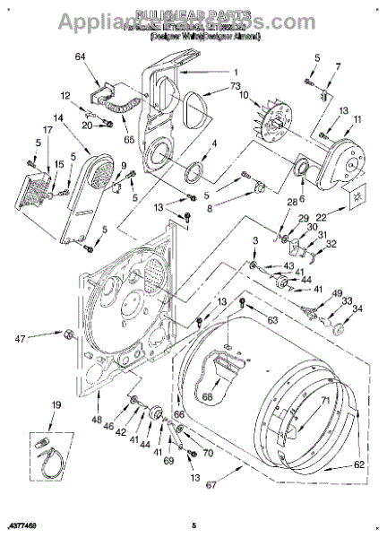 Replaces a cracked, dented, or damaged dryer drum bulkhead. This front drum component restores smooth tumbling action when the original is worn or broken.