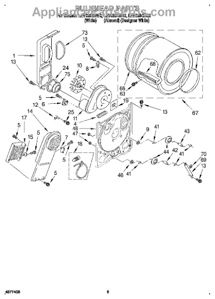 This is a drum assembly intended for use with dryers. This part can be found inside the dryer and is responsible for holding clothing while a cycle is running. It holds wet laundry while loading the appliance. Over time and with use, the drum assembly can start to wear out. This can cause the dryer to squeal, start and stop during a cycle, make buzzing noises, or seize up.If the drum assembly is damaged, it will need to be replaced. Make sure to have basic tools and a pair of work gloves ready. The dryer should be turned off and unplugged from the wall. Raise the top panel, remove the front panel, and then remove the drum. The drum support roller should be taken out and installed on the new drum. Reinstall with the new component and reassemble all parts before use.The drum assembly is made to be used with dryers and washer/dryer combos from Inglis, Estate, Admiral, Crosley, Roper, Magic Chef, Amana, KitchenAid, Maytag, Kenmore, and Whirlpool. It is a genuine OEM replacement part that is sourced directly from the manufacturer. The part is sold on an individual basis.