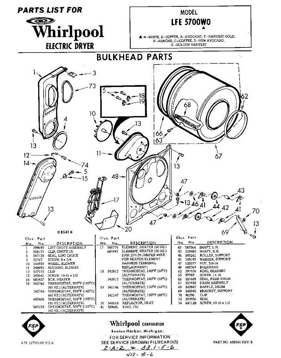 Parts for Whirlpool LFE5700W0: 01 - Bulkhead Parts