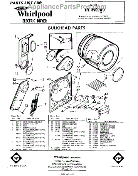 Parts for Whirlpool LFE6900W0: 01 - Bulkhead Parts