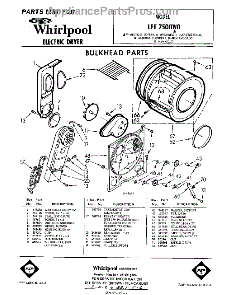 Parts for Whirlpool LFE7500W0: 01 - Bulkhead Parts