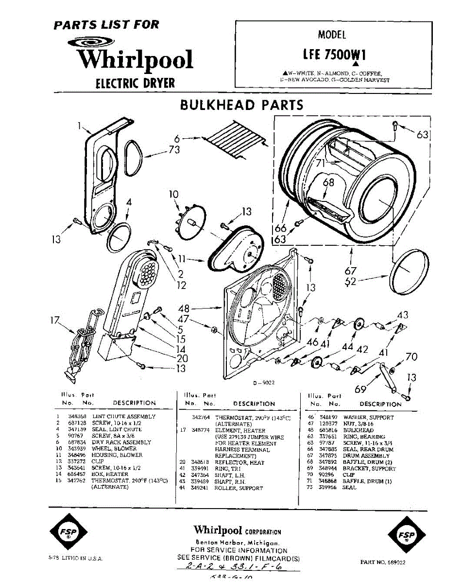 Parts for Whirlpool LFE7500W1: 01 - Bulkhead Parts