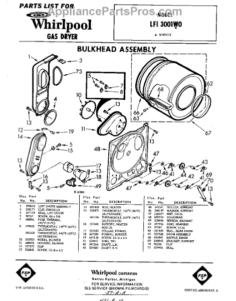Parts for Whirlpool LFI3001W0: 01 - Bulkhead Parts