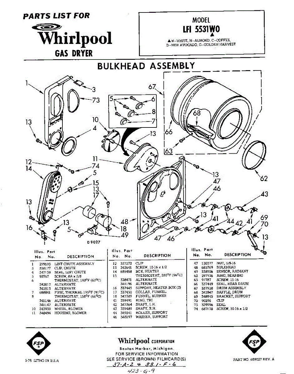 Parts for Whirlpool LFI5531W0: 01 - Bulkhead Parts