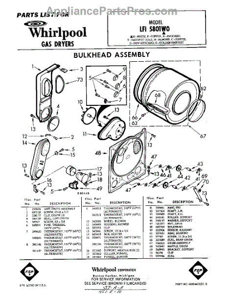 Parts for Whirlpool LFI5801W0: 01 - Bulkhead Parts