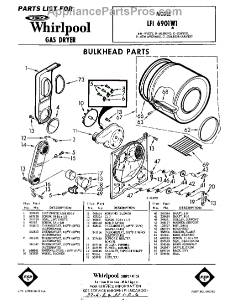 Parts for Whirlpool LFI6901W1: 01 - Bulkhead Parts