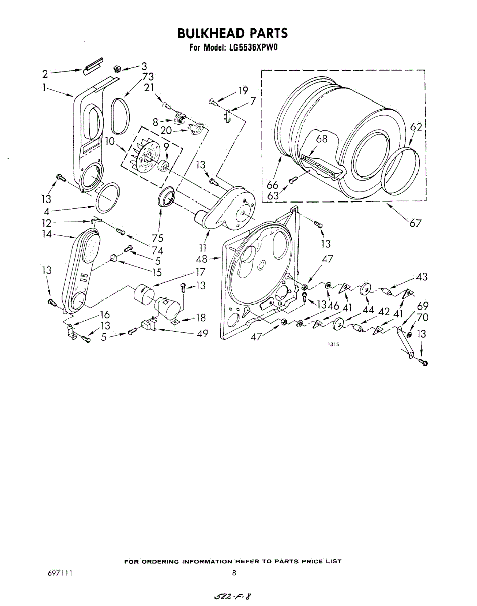 Replacement drum front bulkhead for dryers. Installs at the front of the drum assembly. Needed when original is cracked, damaged, or worn out.