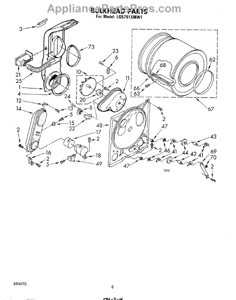 Replacement drum baffle that lifts and tumbles clothes inside the dryer for more even drying and helps prevent garments from snagging. Restores proper drum agitation to reduce noise and improve drying performance. What it does:
