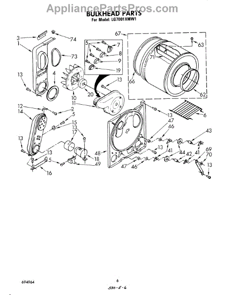 Replacement drum baffle that lifts and tumbles clothes inside the dryer for more even drying and helps prevent garments from snagging. Restores proper drum agitation to reduce noise and improve drying performance. What it does: