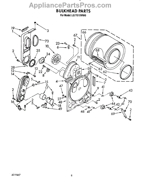 Replacement drum baffle that lifts and tumbles clothes inside the dryer for more even drying and helps prevent garments from snagging. Restores proper drum agitation to reduce noise and improve drying performance. What it does: