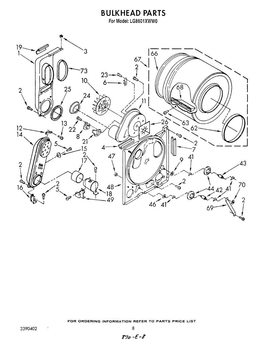 Replacement drum front bulkhead for dryers. Installs at the front of the drum assembly. Needed when original is cracked, damaged, or worn out.