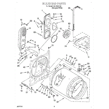 Over time, the drum baffle can become loose or damaged due to frequent use and contact with clothing or objects left in pockets. Physical wear or repeated impacts might cause it to crack, detach, or warp, reducing its ability to tumble clothes properly.