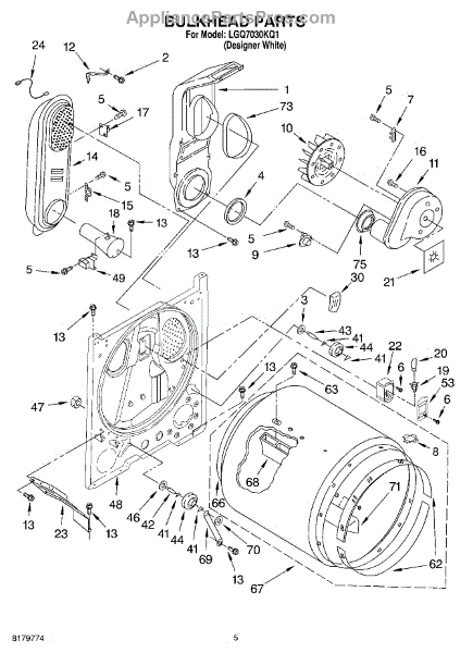 Parts for Whirlpool LGQ7030KQ1: 03 - Bulkhead Parts