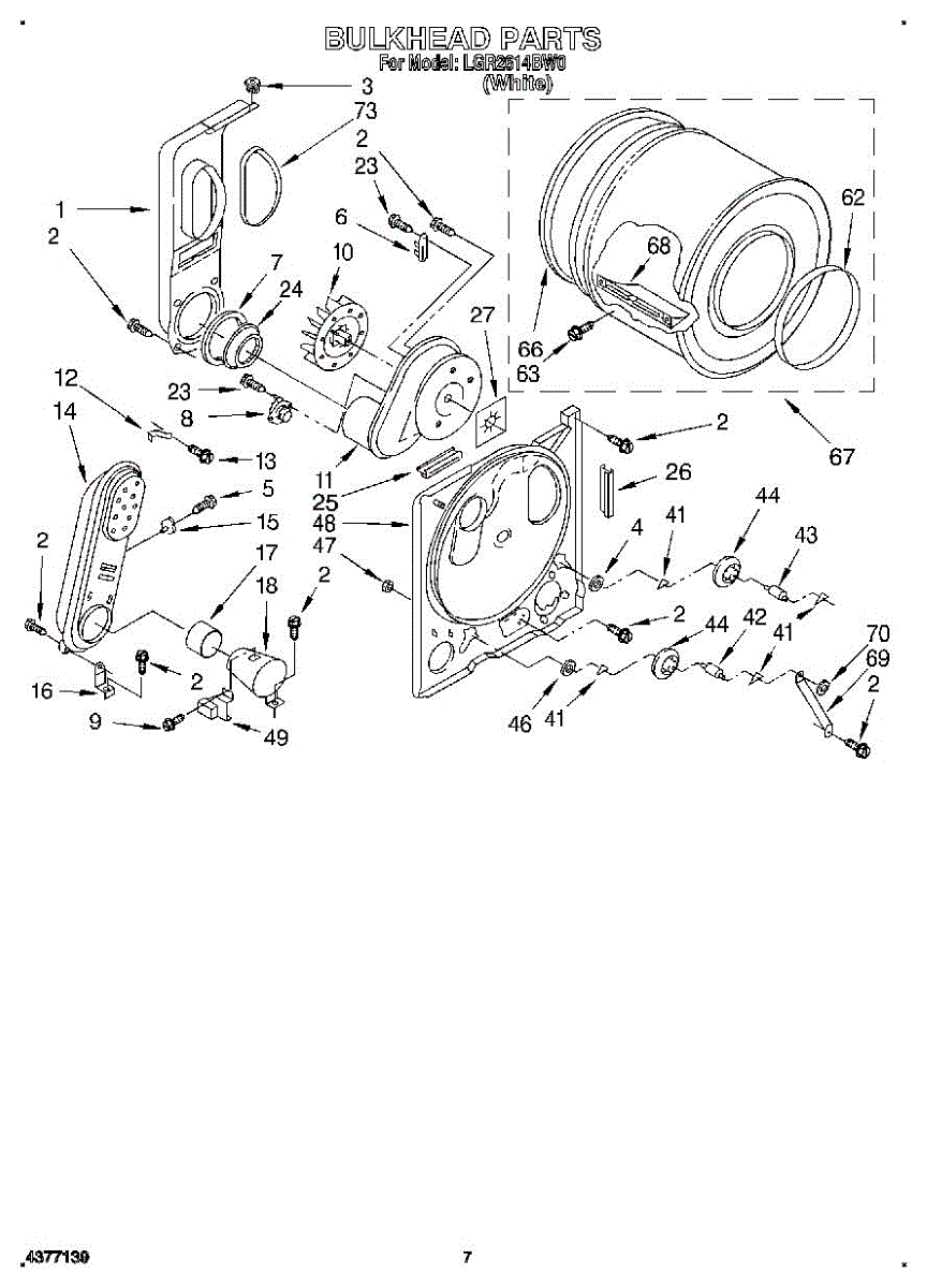 Replacement drum front bulkhead for dryers. Installs at the front of the drum assembly. Needed when original is cracked, damaged, or worn out.