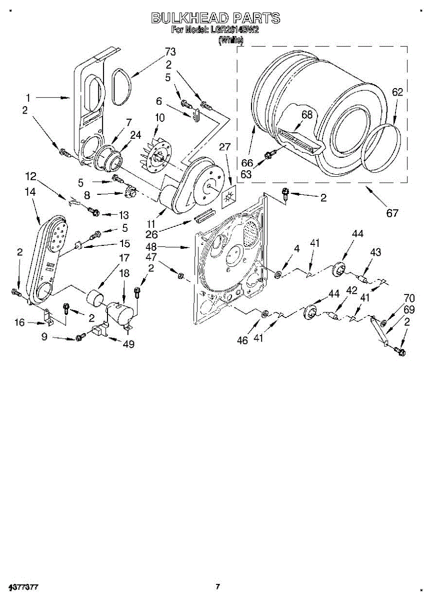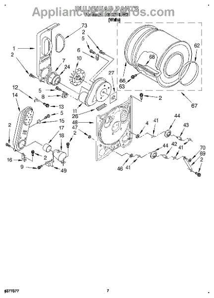 Replacement drum front bulkhead for dryers. Installs at the front of the drum assembly. Needed when original is cracked, damaged, or worn out.