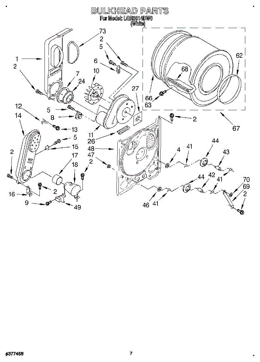 Replacement drum front bulkhead for dryers. Installs at the front of the drum assembly. Needed when original is cracked, damaged, or worn out.