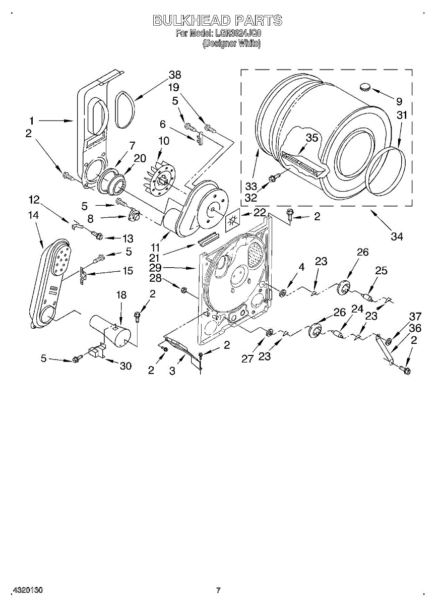 Replacement drum front bulkhead for dryers. Installs at the front of the drum assembly. Needed when original is cracked, damaged, or worn out.