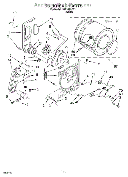 This is a drum assembly intended for use with dryers. This part can be found inside the dryer and is responsible for holding clothing while a cycle is running. It holds wet laundry while loading the appliance. Over time and with use, the drum assembly can start to wear out. This can cause the dryer to squeal, start and stop during a cycle, make buzzing noises, or seize up.If the drum assembly is damaged, it will need to be replaced. Make sure to have basic tools and a pair of work gloves ready. The dryer should be turned off and unplugged from the wall. Raise the top panel, remove the front panel, and then remove the drum. The drum support roller should be taken out and installed on the new drum. Reinstall with the new component and reassemble all parts before use.The drum assembly is made to be used with dryers and washer/dryer combos from Inglis, Estate, Admiral, Crosley, Roper, Magic Chef, Amana, KitchenAid, Maytag, Kenmore, and Whirlpool. It is a genuine OEM replacement part that is sourced directly from the manufacturer. The part is sold on an individual basis.