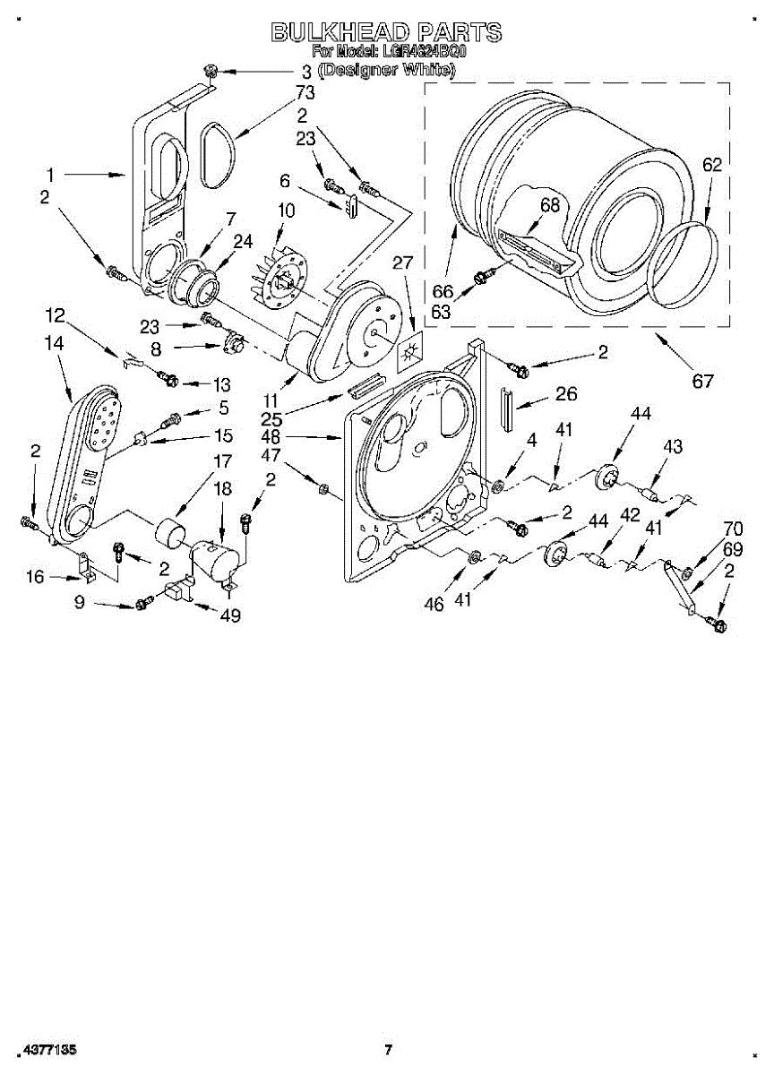 Replacement drum front bulkhead for dryers. Installs at the front of the drum assembly. Needed when original is cracked, damaged, or worn out.