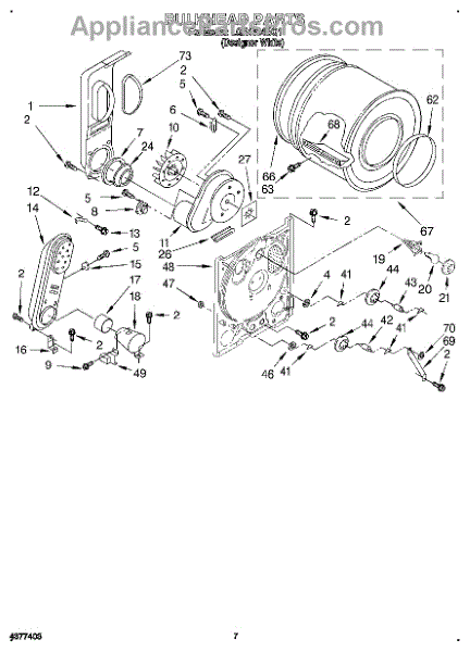 This is a drum assembly intended for use with dryers. This part can be found inside the dryer and is responsible for holding clothing while a cycle is running. It holds wet laundry while loading the appliance. Over time and with use, the drum assembly can start to wear out. This can cause the dryer to squeal, start and stop during a cycle, make buzzing noises, or seize up.If the drum assembly is damaged, it will need to be replaced. Make sure to have basic tools and a pair of work gloves ready. The dryer should be turned off and unplugged from the wall. Raise the top panel, remove the front panel, and then remove the drum. The drum support roller should be taken out and installed on the new drum. Reinstall with the new component and reassemble all parts before use.The drum assembly is made to be used with dryers and washer/dryer combos from Inglis, Estate, Admiral, Crosley, Roper, Magic Chef, Amana, KitchenAid, Maytag, Kenmore, and Whirlpool. It is a genuine OEM replacement part that is sourced directly from the manufacturer. The part is sold on an individual basis.